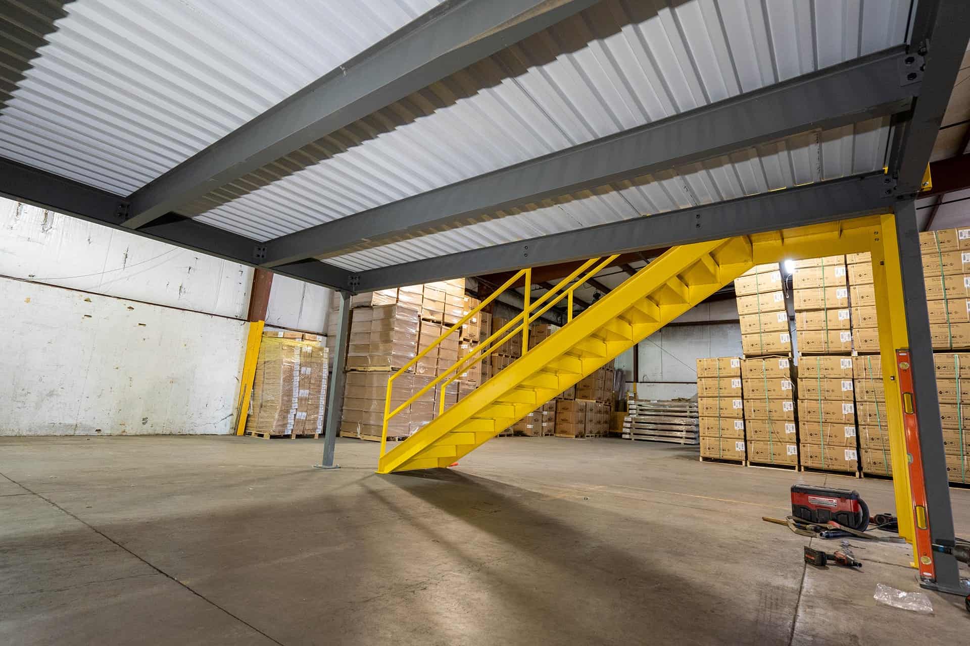 White bottom decking is popular for mezzanine applications because it enhances lighting on the underside of the structure.